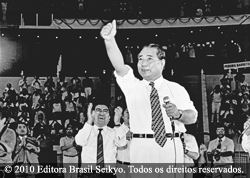 Na manhã do dia 28 de novembro, durante a abertura da Convenção Comemorativa do Brasil Monarca do Mundo, em Manaus, os 2.500 representantes da BSGI que lotavam o Estúdio 5 dedicaram um minuto de silêncio em homenagem ao presidente honorário da BSGI, Sr. Roberto Yasuhiro Saito, que falecera na noite do dia 26. Nesse momento, me veio à mente a sua notável dedicação em prol do Kossen-rufu do Brasil.